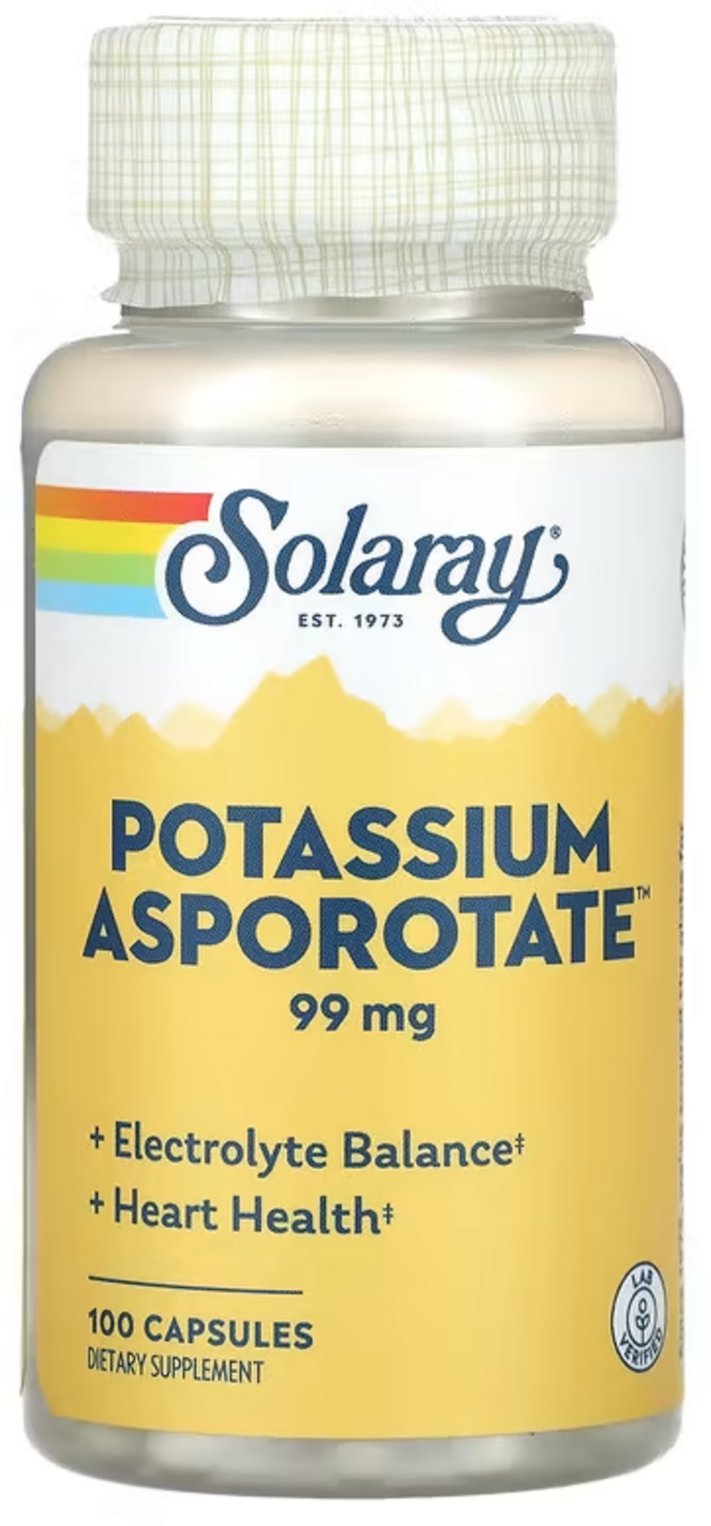 Ta kalijev kompleks znamke Solaray vsebuje 99 mg elementarnega kalija na kapsulo, vezanega kot asporat, citrat in orotat – skrbno oblikovana kombinacija. Vsebuje tudi zeliščno mešanico peteršilja, kamilice in vodne kreše, ki dopolnjuje izdelek.