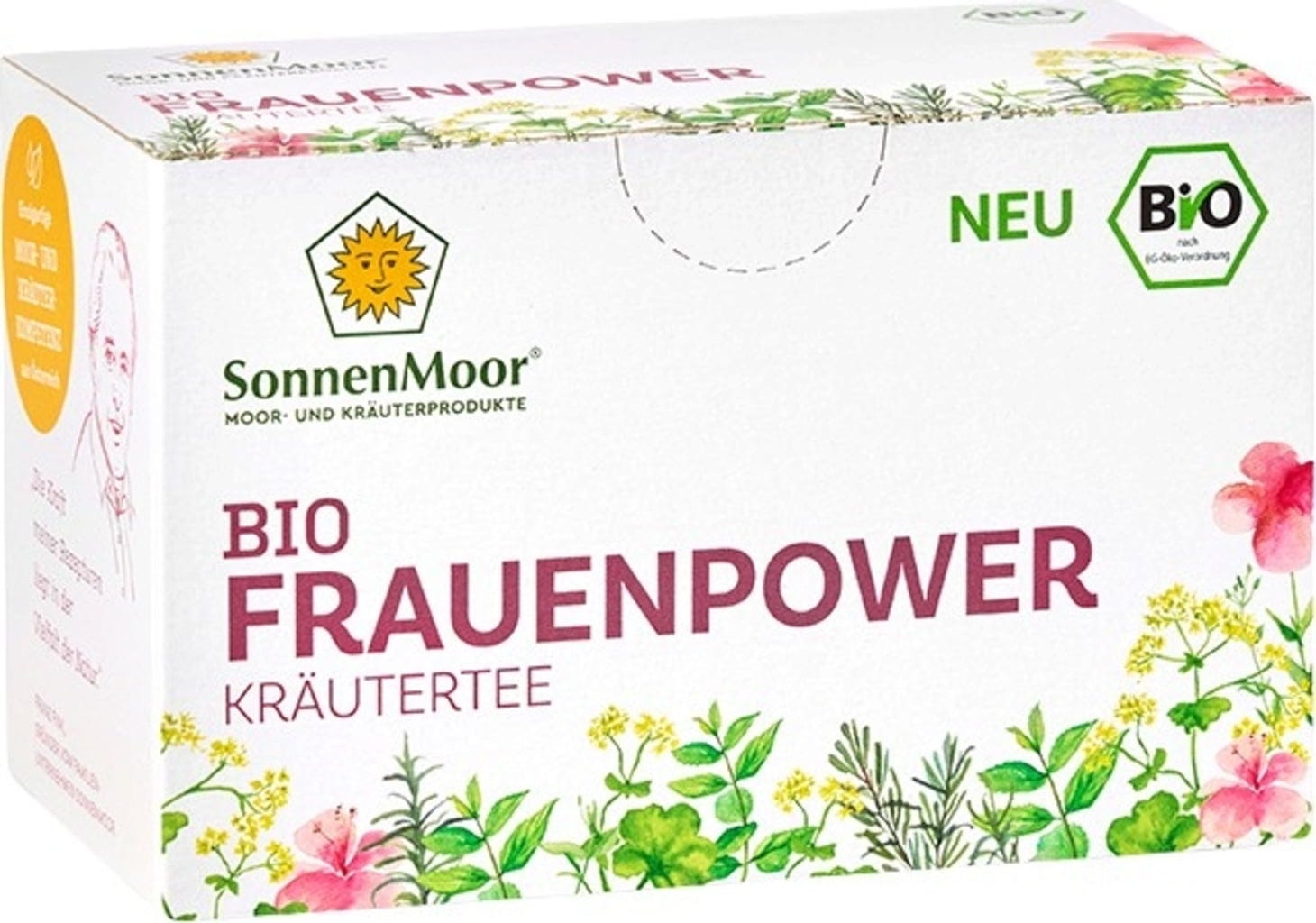 Bio zeliščni čaj "Ženska moč" znamke SonnenMoor je skrbno uravnotežena mešanica, ki je posebej zasnovana za vsakodnevno uživanje. Recept združuje osem visokokakovostnih bio zelišč, kot so hibiskus, ingver, materina dušica in rman. Dopolnjujejo jih citronska mirta, meta, korenina sladkega korena in rožmarin, rezultat pa je večplasten aromatični profil. Surovine prihajajo od regionalnih ekoloških kmetov v Avstriji in so predelane brez umetnih dodatkov.