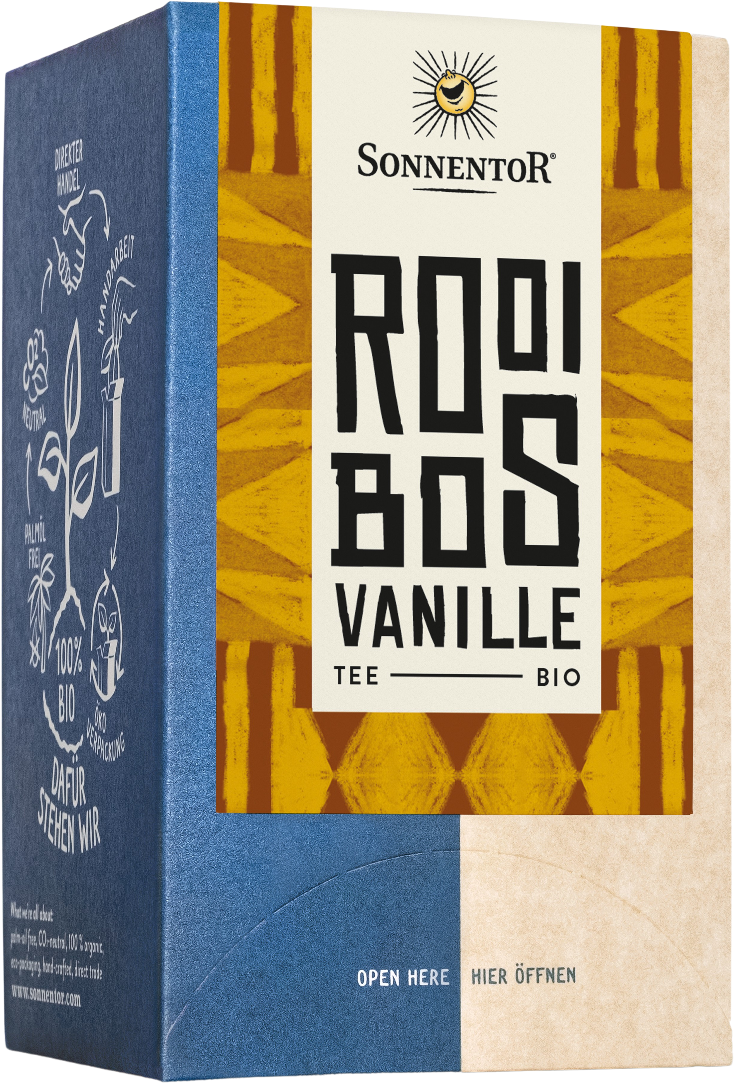 Preprosto nebeška kombinacija! Polnega okusa in rahlo zemeljskega okusa rooibosa v kombinaciji z eteričnim oljem vanilije in ekstraktom vanilije v prahu nastane sladka pijača z okusom slada, ki očara čute. Dodajanje kapljice mleka ali smetane okrepi arome. Eventuelno je čaj mogoče sladkati z žličko medu. Zaradi svoje naravne sladkosti je ta pijača vznemirljiva kombinacija z začinjenimi jedmi.