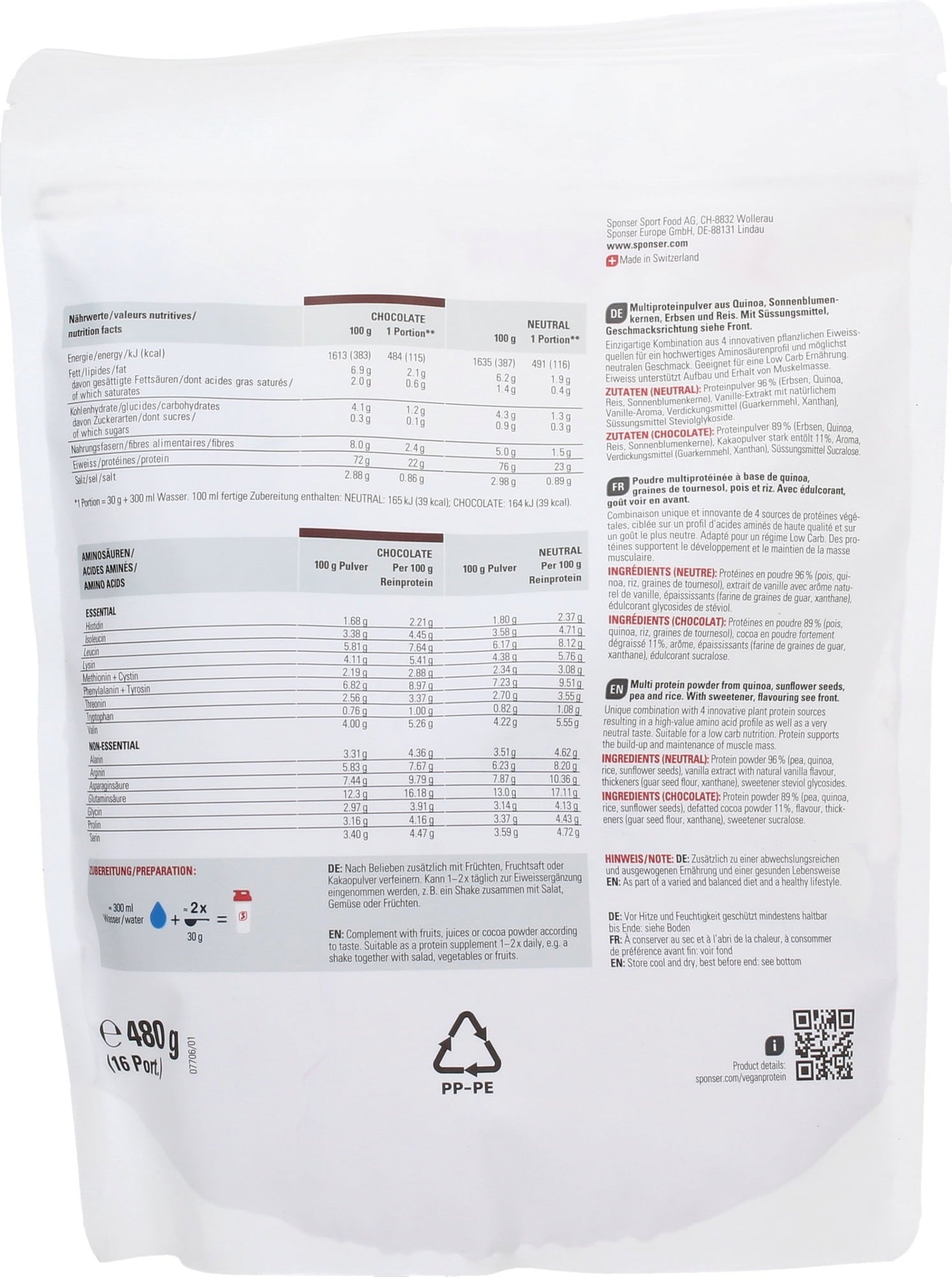 Inovativen, veganski vir beljakovin, ki združuje različne rastlinske beljakovine, kot so kvinoja, sončnična semena in riž. V tem multiproteinskem prahu so se namerno izognili soji. Namesto tega je bil poudarek na več kot 20 g beljakovin na porcijo in celotnem spektru aminokislin. Zahvaljujoč nevtralnemu okusu ga je mogoče enostavno kombinirati ali oplemenititi.