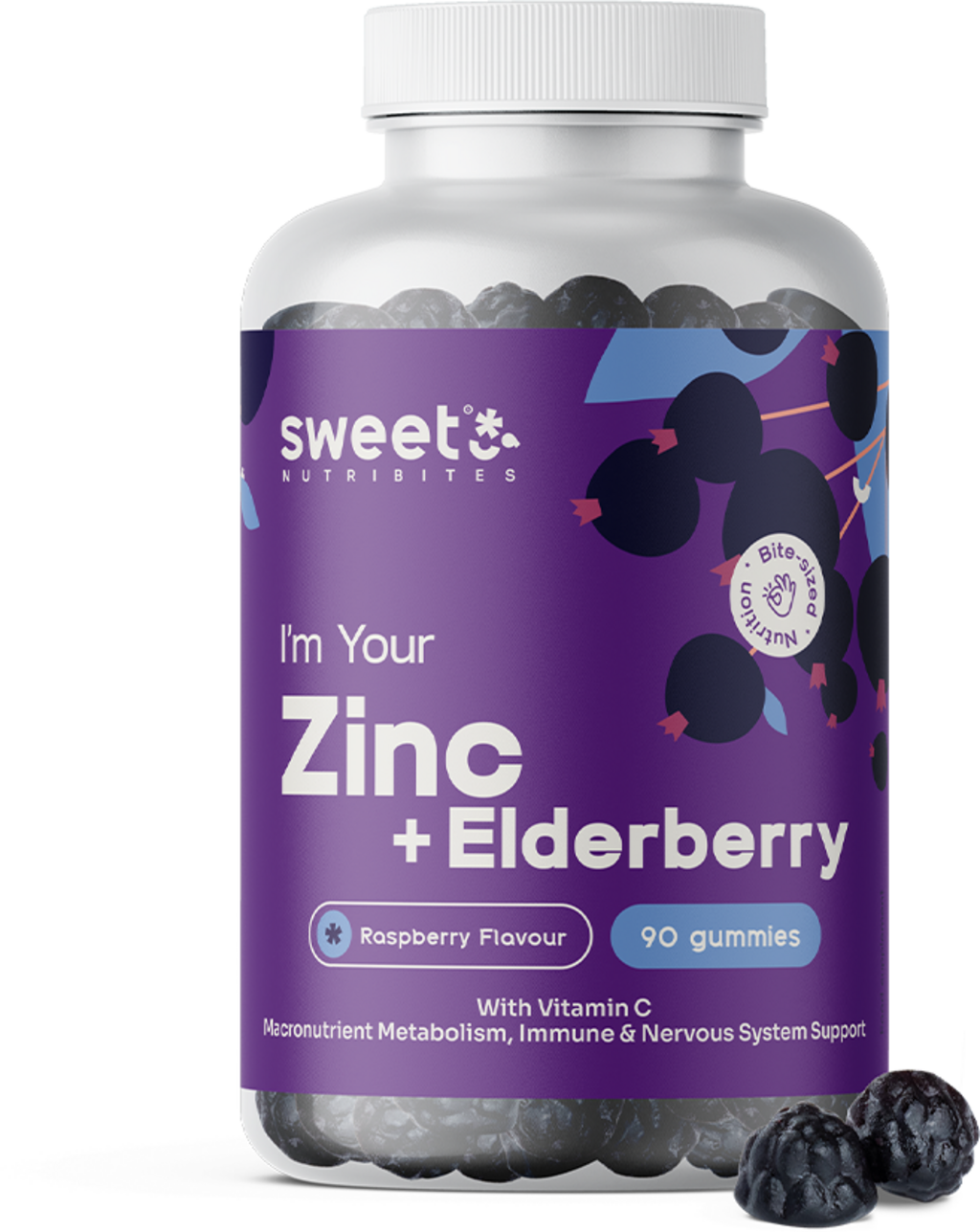 Ti gumijasti bonboni znamke Sweet Nutribites vsebujejo cink v biološko aktivni obliki cinkovega glukonata, pa tudi vitamin C in izvleček črnega bezga. Cink je esencialni element v sledovih, ki ga telo ne more samo proizvajati. Črni bezeg pa se uporablja kot priljubljeno domače zdravilo v čajih in sirupih. Že en gumijasti bonbon na dan zagotavlja optimalno podporo v vsakdanjem življenju.