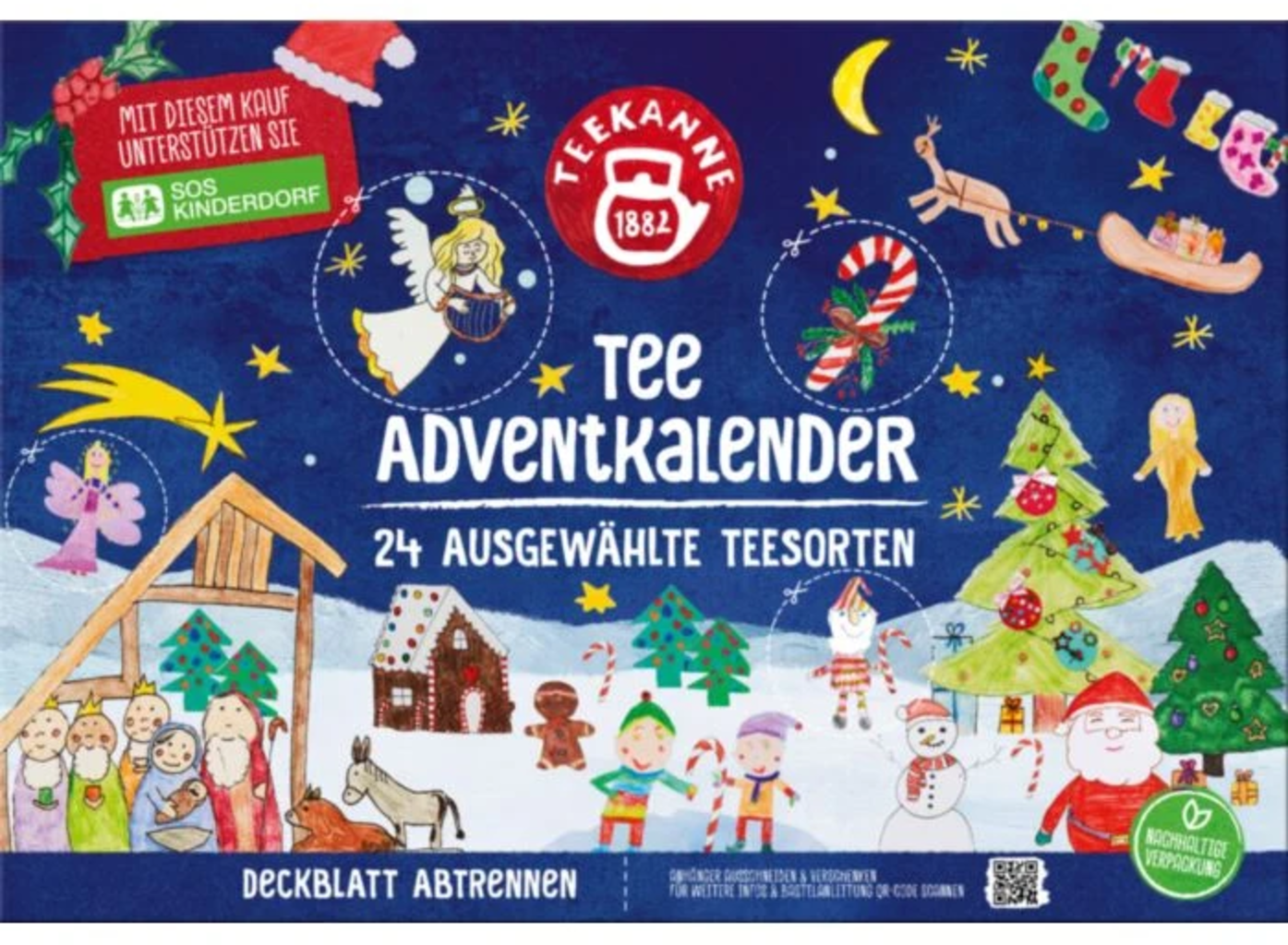 24 čudovitih čajev za vsak okus vas bo spremljalo v prijetnih zimskih večerih, dragocenih odmorih za čaj in sproščujočih urah z družino in prijatelji v adventnem času. Ne glede na to, ali gre za sadne, zeliščne ali pikantne čaje, črne ali zelene čaje, je ta komplet poln presenečenj, ki jih je vredno poskusiti in v katerih uživati. Prikupne ilustracije na embalaži so narisali otroci iz SOS Kinderdorf in otroci zaposlenih v podjetju TEEKANNE in se lahko uporabljajo kot darilne etikete. Trajnost je pri embalaži glavna prednostna naloga, zato se izogibajo plastičnim vložkom in celofanskemu ovoju.