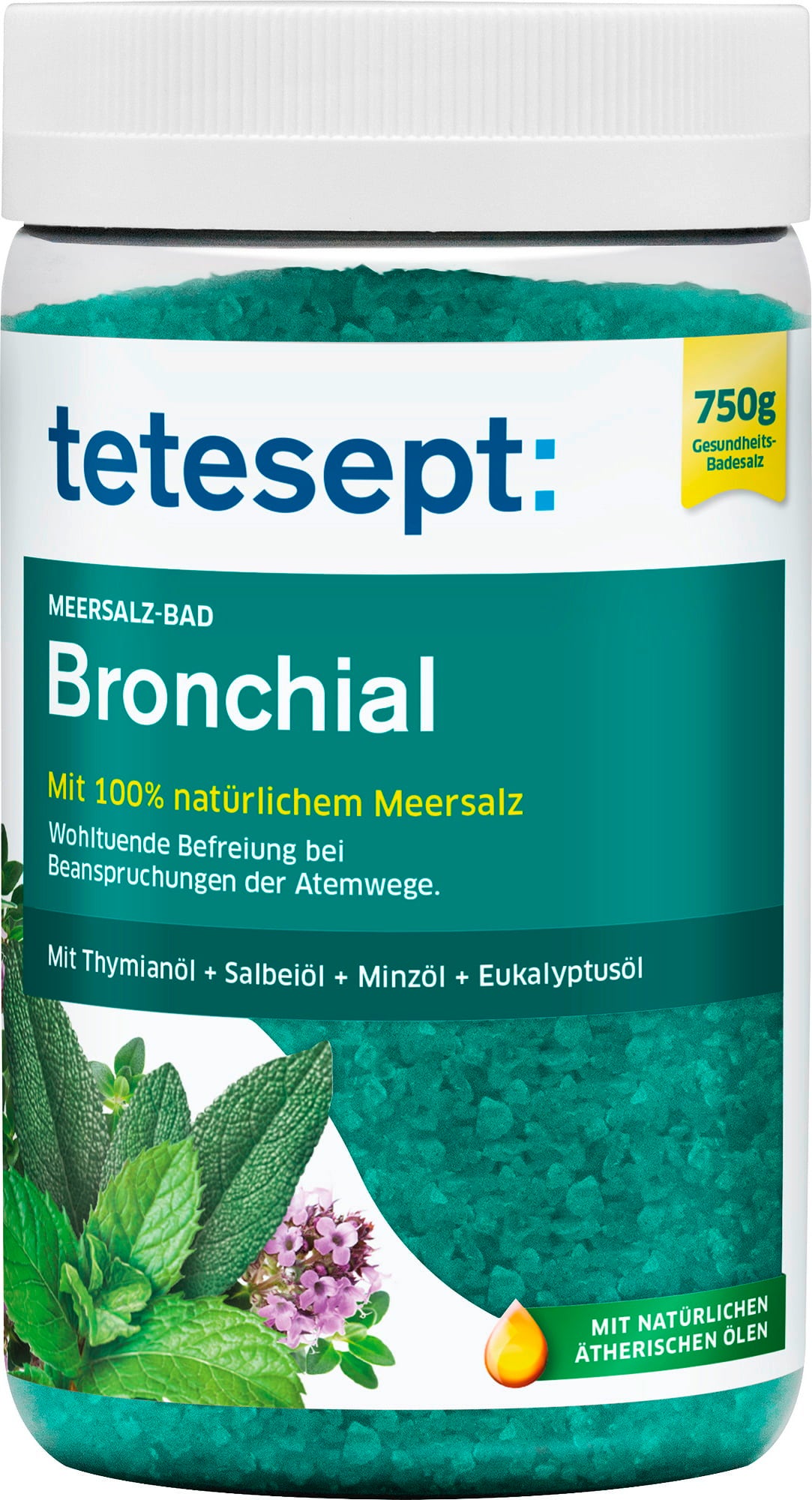 Kaj je lahko lepšega kot sproščujoča kopel po dolgem dnevu? Bronhialna morska sol znamke tetesept je kot nalašč za hladne mesece in navdušuje s svojo 98% naravno formulo. Poleg najfinejše morske soli so uporabljena le naravna eterična olja timijana, žajblja, mete in evkaliptusa, zaradi česar je kopel resnično sproščujoča izkušnja.